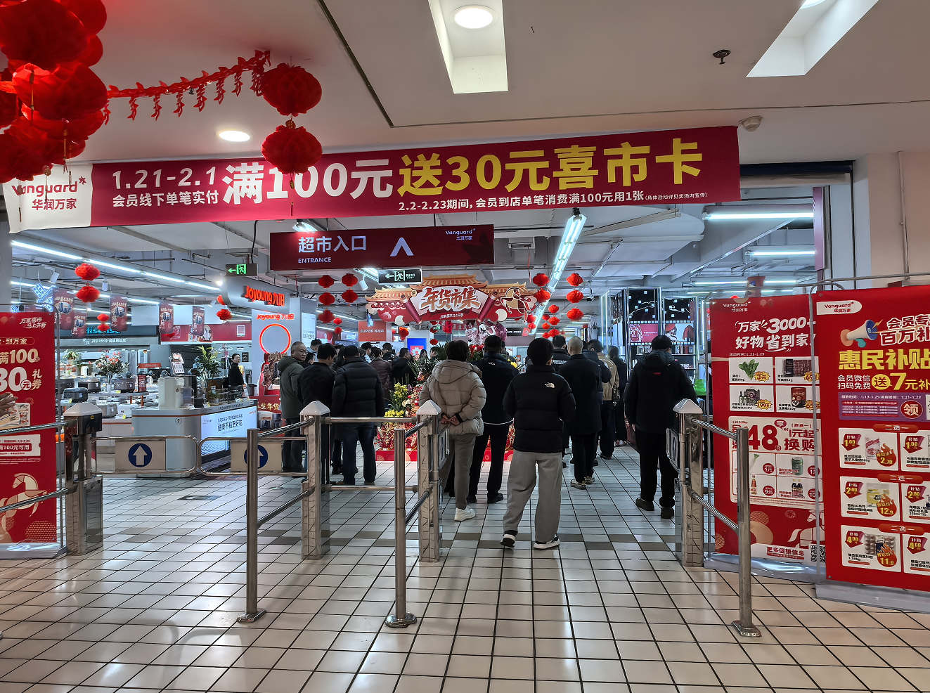 据会意,1月21日至2月1日光阴,华润万家超市推出会员专享受利:单笔实付满100元送30元喜市卡,每个会员最众可获2张。喜市卡可正在2月2日至2月23日光阴运用,相当于七折优惠。更知心的是,会员单笔消费满48元,就能享用超值换购时机:10元换购恒顺香醋、9元换购香满园纯芝麻油,或者仅1元换购雪花啤酒一听或白萝卜一根。云云的优惠力度让不少克勤克俭的顾客直呼“真香”。